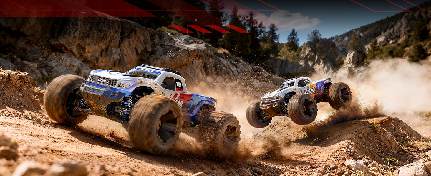 Four-wheel drive system delivers strong traction and stable control on dirt, grass, gravel, and uneven terrain. - 1/16 Scale RC Monster Truck